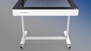 El escáner está montado sobre un soporte de piso resistente con ruedas, lo que permite una fácil movilidad y reposicionamiento según sea necesario. Este diseño garantiza que pueda operar el escáner libremente, facilitando un flujo de trabajo cómodo sin estar confinado a una ubicación fija.